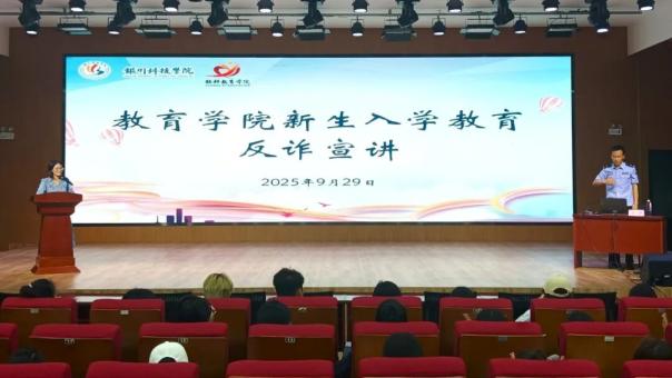 为提升新生安全防范意识,筑牢校园反诈防线,10月10日晚,教育学院于图书馆六楼报告厅隆重举办2025级新生反诈安全主题教育讲座。本次讲座特邀西夏区公安分局民警王潇担任主讲人,2025级全体新生及辅导员田亚慧、张文杰老师共同参与。
